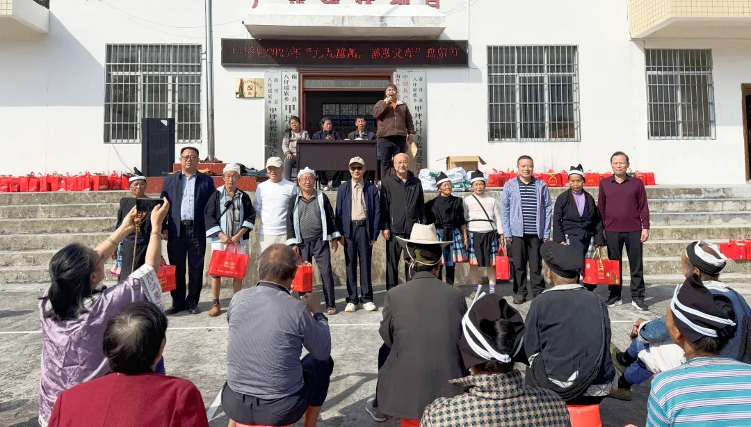 离退休老干部为南丹县八圩乡甲坪村村民送上重阳节慰问品